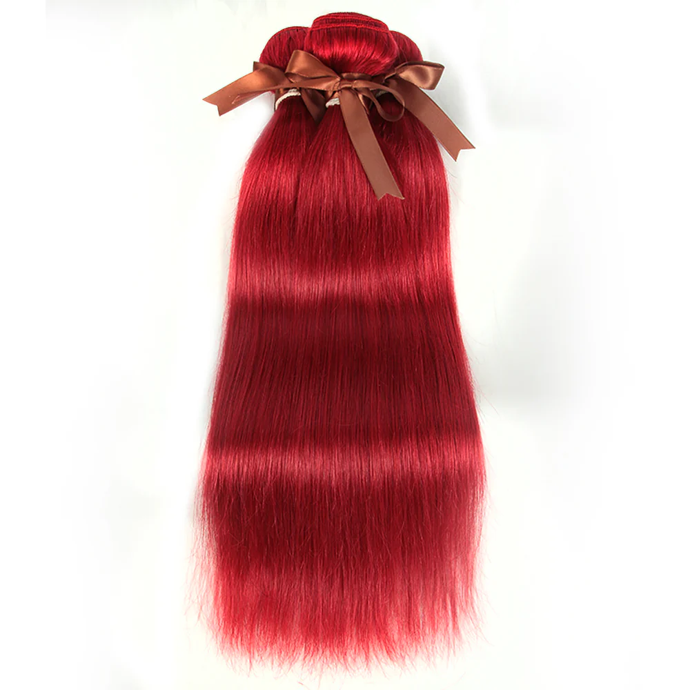 Queen Remy Human Hair 3 Bundles with Closure Straight Hair Weave Red Color