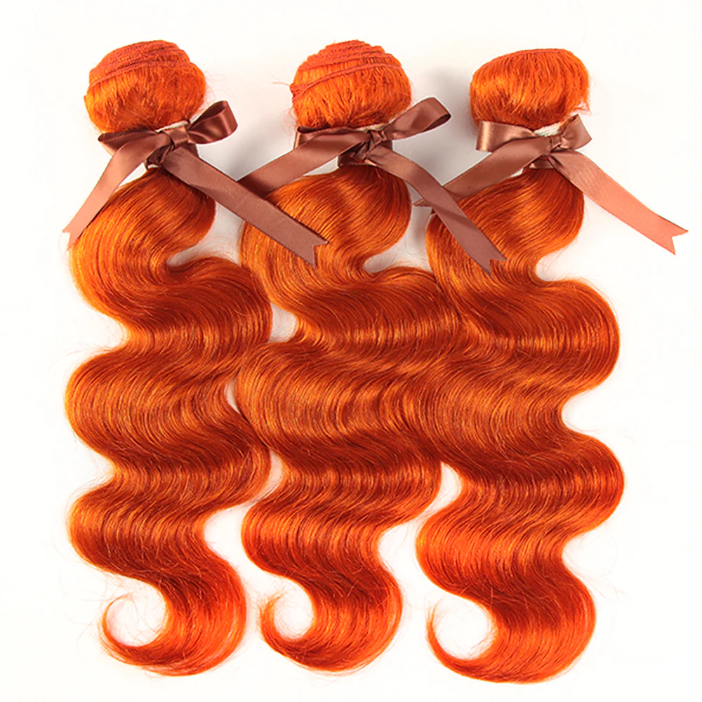Queen Remy Ginger Human Hair 3 Bundles Body Wave Hair Orange Color